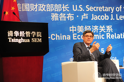 美国财政部部长雅各布·卢(Jacob J. Lew)做客清华经管学院谈中美经济关系