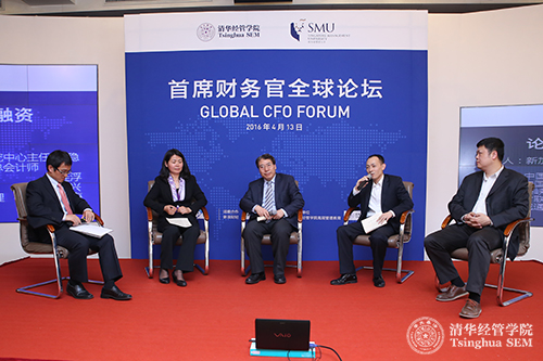 2016年4月13日,由清华大学经济管理学院和新加坡管理大学会计学院主办,清华经管学院高管教育中心承办的第二届首席财务官全球论坛在舜德楼举行。清华经管学院副院长徐心教授、新加坡管理大学会计学院院长程强教授、清华经管学院会计系系主任肖星教授、清华经管学院金融系朱武祥教授、中兴通讯副总裁陈虎先生、SAP卓越中心总经理舒彬先生、红杉资本中国基金副总裁钱骥先生、中国出口信用保险公司国别风险研究中心王稳主任等嘉宾出席了本次论坛。论坛由清华经管学院会计系李丹教授主持。