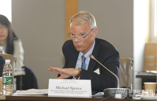 纽约大学斯特恩商学院William R. Berkley经济学商学教授、1981年美国经济学会约翰•贝茨•克拉克奖获得者、2001年诺贝尔经济学奖获得者迈克尔•斯宾塞(Michael Spence)在“增长战略:国家角色的转变”高端学术会议上发言
