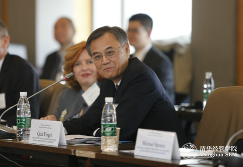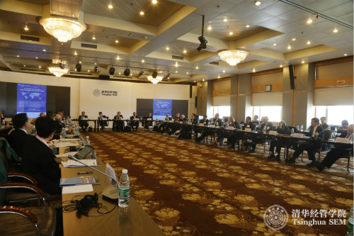 2016年3月18日,“增长战略:国家角色的转变”圆桌会议在清华大学经济管理学院召开。此次会议汇集了来自亚洲、欧洲、美国和拉丁美洲的学者、专家、政商领袖,其中包括哥伦比亚大学经济学教授约瑟夫•斯蒂格利茨(Joseph E. Stiglitz)(1979年美国经济学会约翰•贝茨•克拉克奖获得者、2001年诺贝尔经济学奖获得者),哥伦比亚大学McVickar政治经济教授埃德蒙•费尔普斯(Edmund Phelps)(2006年诺贝尔经济学奖获得者),纽约大学斯特恩商学院William R. Berkley经济学商学教授迈克尔•斯宾塞(Michael Spence)(1981年美国经济学会约翰•贝茨•克拉克奖获得者、2001年诺贝尔经济学奖获得者),哈佛大学George F. Baker经济学教授马丁•费尔德斯坦(Martin Feldstein)(1977年美国经济学会约翰•贝茨•克拉克奖获得者),联合国秘书长特别顾问、哥伦比亚大学地球研究所所长杰弗里•萨克斯(Jeffrey Sachs)。清华大学经济管理学院院长钱颖一教授出席并致辞,清华经管学院弗里曼讲席教授、清华大学苏世民学院院长、清华大学中国与世界研究中心主任李稻葵和清华经管学院弗里曼讲席教授、经济系系主任、副院长白重恩分别主持第一场和第二场会议。