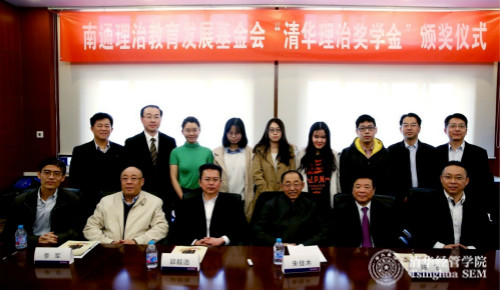 3月26日,2015-2016年度“清华理治奖学金”颁奖仪式在清华大学经济管理学院举行。朱理治之子、中国社会科学院原副院长、中华人民共和国国史学会会长、南通理治教育发展基金会管委会主任朱佳木,国务院三峡工程建设委员会办公室副主任陈飞,南通理治教育发展基金会理事长季军,南通市委教育工委书记、教育局局长郭毅浩,清华大学档案及校史馆馆长范宝龙、清华经管学院党委副书记焦捷教授和清华大学公共管理学院崔之元教授,以及南通市教育系统有关领导和驻京机构代表,获奖学生等近30人参加了颁奖活动。活动由清华经管学院学生工作组组长高峰教授主持。