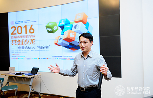清华经管创业者加速器BD总监周英辉在2016首届清华经管学院共创沙龙活动暨创业合伙人“相亲会”活动上发言
