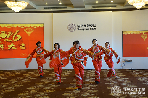 学院党委书记高建教授代表学院向到场的教职工致以新春的祝福。团拜会准备了丰富多彩的文艺节目和互动游戏。工会舞蹈小组的王燕、杜波、岳秀霞、翟萌萌、张琪、孙楠带来了充满喜庆的舞蹈“风华正茂”。清华x-空间张琪的独舞“沂蒙情”受到热烈欢迎。教职工们还参加了猜谜语和筷子夹乒乓球等互动活动。最后的游戏“击鼓传猴”将活动带入高潮。由副院长钱小军教授击鼓,代表喜庆的猴子毛绒玩具在所有参加活动的教职工之间传递,得到吉祥物的幸运者把美好的祝福和悠扬的歌声送给大家。新春团拜会在欢声笑语中结束。(供稿:清华经管学院工会责编:黄为华)
