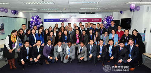 2015年11月22日晚,以“STEP FORWARD”为主题的斯坦福-清华学生交换项目(Stanford Tsinghua Exchange Program,以下简称“STEP项目”)十周年庆典活动在清华大学经济管理学院举行。清华经管学院副院长钱小军教授,STEP项目首届学术指导教师、学院创新创业与战略系张帏教授,STEP项目现任学术指导教师、学院领导力与组织管理系陈昊教授,美国斯坦福大学商学院现任学术指导教师黄思绮教授,斯坦福商学院大中国区主任韩诚先生(Frank Hawke),本届交换项目的两校40余名MBA学生以及往届曾参与项目的10余名MBA校友参加了此次活动。