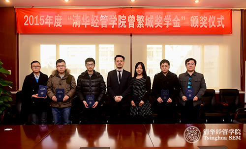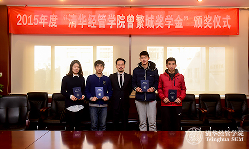 2015年12月15日,2015年度“清华经管学院曾繁城奖学金”颁奖仪式在学院举行,共有4位本科生和6位研究生获得本年度奖学金。台湾积体电路制造股份有限公司中国区业务发展总监陈文俊先生代表曾繁城先生出席颁奖仪式。清华经管学院研究生工作组组长、经济系杨思群教授出席了颁奖仪式。活动由学院合作发展办公室副主任唐云端主持。