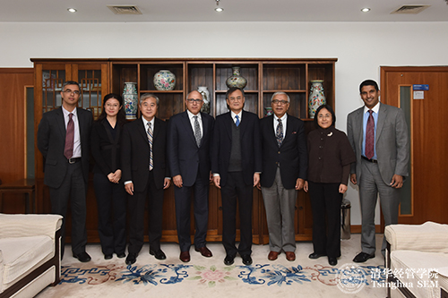 11月4日,管理专业研究生入学考试委员会(Graduate Management Admission Council,简称GMAC)总裁Sangeet Chowfla一行五人来访。清华大学经济管理学院院长、全国工商管理专业学位研究生教育指导委员会(以下简称“MBA教指委”)副主任委员钱颖一教授与之会面,一同参加会面的还有MBA教指委副秘书长、清华大学国际处处长郦金梁教授,清华经管学院副院长钱小军教授等。与Sangeet Chowfla先生同行前来的还有GMAC市场管理执行副总裁Ramesh Thadani、亚太区副总裁Ashish Bhardwaj、产品管理副总裁Ashok Sarathy、研发副总裁Fanmin Guo。