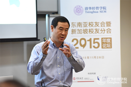 清华经管学院党委副书记焦捷教授在清华经管学院东南亚校友会暨新加坡分会2015年度论坛上致辞