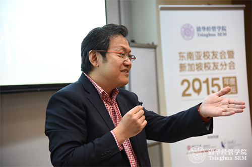 清华经管学院EMBA新加坡校友会副会长张向东作主题为“互联网创新创业形势和新加坡及东南亚创新创业机会”的演讲