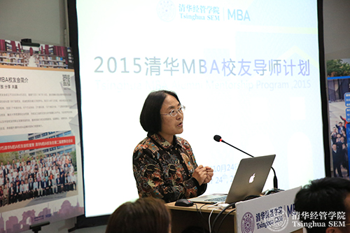 随后,清华MBA教育中心校友发展总监于红蕾介绍了校友导师计划的总体构想,包括校友会的概况、校友导师计划开展九年来的情况和2015年校友导师计划执行方面的工作建议。九年来一共有1,100人次校友参与校友导师计划,学生参与者达3,200多人。校友导师计划对清华MBA学生的学习和职业发展发挥了重要作用。
