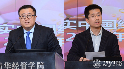 清华大学副校长杨斌教授(左)、清华经管学院副院长徐心教授(右)致辞