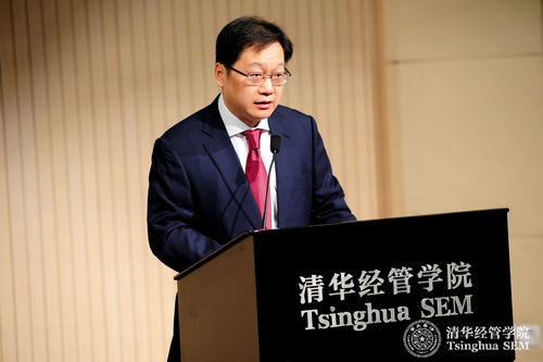 之后是清华大学谢维和副校长致辞。首先,谢维和教授强调清华大学是一所崇尚开放和进取的大学,目的是要用更高更广泛性的标准来评价学校的人才培养和办学水平。第二,清华大学与香港中文大学合作开展的FMBA项目已经成为了一个品牌,这既得益于两所学校所给予该项目强大的师资支持,同时也体现出项目培养的上千名学生在业界的广泛影响。他还鼓励学生们以往届校友为标杆,一定要自强、努力和刻苦。最后,他认为在现如今的金融形势下,学生们的选择恰逢其时,希望大家可以在“已有的知识基础上加入新的内涵”。