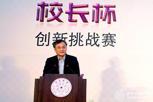 清华大学经济管理学院院长钱颖一教授在欢迎辞中向与会人员介绍了清华x-空间(x-lab)和“校长杯”创新挑战赛,并表示希望通过“校长杯”让学生和年轻校友能够得到多一些支持,让梦想照进现实,让他们在大众创业、万众创新的热潮中创造自己的传奇。此外,钱颖一教授介绍说,本届“校长杯”较上届相比有几点新的特色。第一是新增了社会创新奖,让有好想法的社会创新项目在这个平台上得以成长。第二是为参赛团队提供了“九宫格训练法”,其中包括分类辅导、课程学习、加速计划、导师帮带、资源对接、团队互动、社区交流、现场观摩、特色训练等,帮助参与者提高创新创业的综合能力。