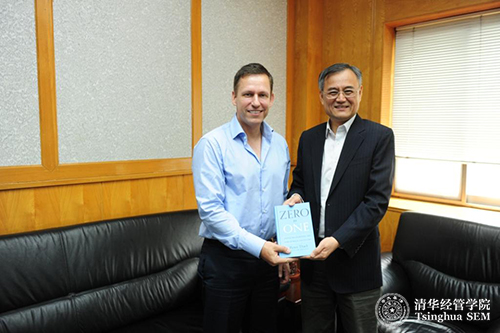 5月28日,《从0到1:开启商业与未来的秘密》作者、PayPal联合创始人彼得•蒂尔(Peter Thiel)先生一行访问清华大学经济管理学院,拜访清华经管学院院长钱颖一教授。清华经管学院党委书记、副院长高建教授参加了会见。