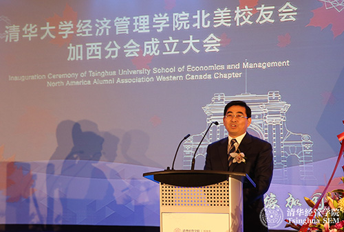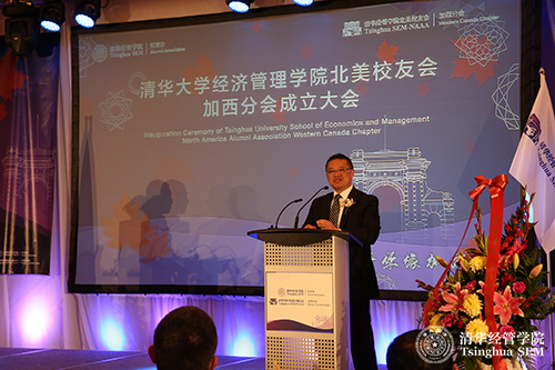 当地时间2015年4月22日,清华大学经济管理学院北美校友会加西分会成立大会在温哥华举行。清华经管学院院长钱颖一教授出席成立大会。中国驻温哥华总领馆教育组参赞于长学,温哥华市代市长、市议员Raymond Louie(雷建华),本拿比市(Burnaby)议员王白进,香港特区政府驻加西首席专员袁黄洁玲,加拿大前外贸部长Stockwell Day,不列颠哥伦比亚省(British Columbia,简称BC省)国际贸易和亚太战略部副部长Clark Roberts,温哥华经济贸易委员会总裁Ian Mckay,BC省高教厅助理副厅长Ramona Soares,贸易发展部温哥华地区贸易专员Lindsay Margenau等嘉宾出席成立大会。西蒙弗雷泽大学(Simon Fraser University)教授王健,不列颠哥伦比亚大学(University of British Columbia)教授Yves Tiberghien,对外经贸大学加拿大校友会会长王元珑,复旦大学加拿大校友会会长殷涛,浙江大学温哥华校友会会长姜玮清,长江商学院加拿大校友会会长罗志兰,五所交通大学加拿大联合校友会会长刘毅,中欧校友会代表,北大校友会代表等嘉宾出席成立大会。学院校友办主任、学院校友会秘书长王海涛(MBA2012-金融),学院北美校友会会长郭绍增(EMBA2010)和秘书长泥卫东(EMBA2010)出席成立大会。成立大会由解常松(EMBA2004)和赵琳(EMBA2004)主持。