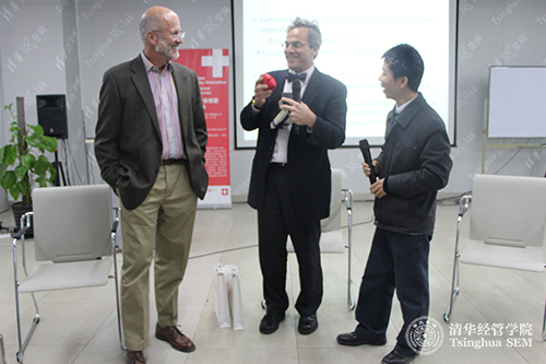 为庆祝中国和瑞士建交六十五周年,2015年3月26日下午,清华x-lab(清华x-空间——清华大学创意创新创业教育平台)举办了一场以创新为主题的对话活动。《创新的国度——瑞士制造的成功基因》(Swiss Made: the untold story behind Switzerland’s success)一书作者,瑞士经济历史学家詹姆斯•布雷丁(James Breiding)先生讲述了瑞士成功背后的故事,分享瑞士创新模式的独特性。清华大学经济管理学院副教授、清华x-lab学术副主任Steven White分析了硅谷的创新模式。瑞士创新对话硅谷创新,文化和思维的碰撞,给师生们带来了创新的盛宴。清华大学经济管理学院副教授、清华x-lab学术主任张帏教授主持本次活动,瑞士驻华大使戴尚贤和科技参赞白尼克出席本次活动。