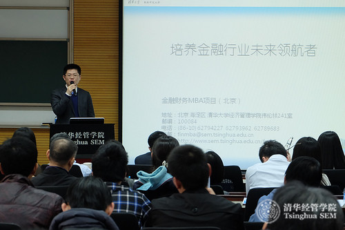 2015年3月14日下午,清华大学-香港中文大学金融财务MBA(以下简称FMBA)项目2015年第二次招生说明会暨公开课在清华经管学院伟伦楼508教室举行。