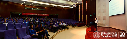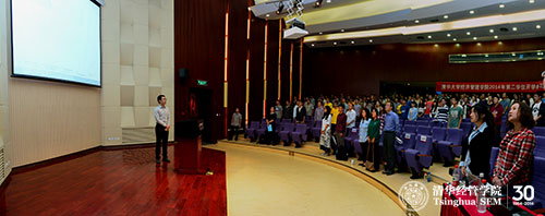 2014年9月27日,清华大学经济管理学院本科第二学位开学典礼暨入学导向活动在伟伦报告厅举办。院长助理钱小军教授,经济系副系主任钟笑寒教授,管理学第二学位项目学术协调人胡左浩教授,经双13班班主任孟岭生教授、郭美新教授,管双13班班主任蔚林巍教授、姜朋教授,校友事务办公室主任王海涛老师出席活动。