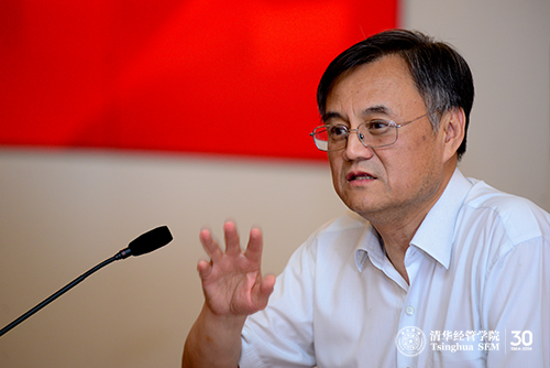 2014年7月12日下午,清华大学经济管理学院校友会第一届理事会会议在舜德楼418召开。清华经管学院院长、学院校友会会长钱颖一教授与到场的21位校友理事以及两位通过电话连线参会的校友理事一同商议、完善了校友会章程,并就如何密切学院各项目校友会与学院校友会之间的关系、增强校友会整体影响力等问题进行了深入探讨。会议由学院校友会秘书长、学院校友办公室主任王海涛(MBA2012-金融)主持。