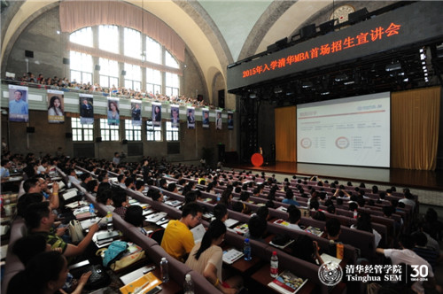 2014年6月7日下午,2015年入学清华MBA项目首场招生宣讲会在清华大学大礼堂举行。招生宣讲会正式推出灵活学制、集中授课班、新生奖学金和渐进式申请流程四大招生政策。宣讲会吸引了社会各界精英的广泛关注,可容纳千人的大礼堂座无虚席,一些考生站在过道听完了整场宣讲会。