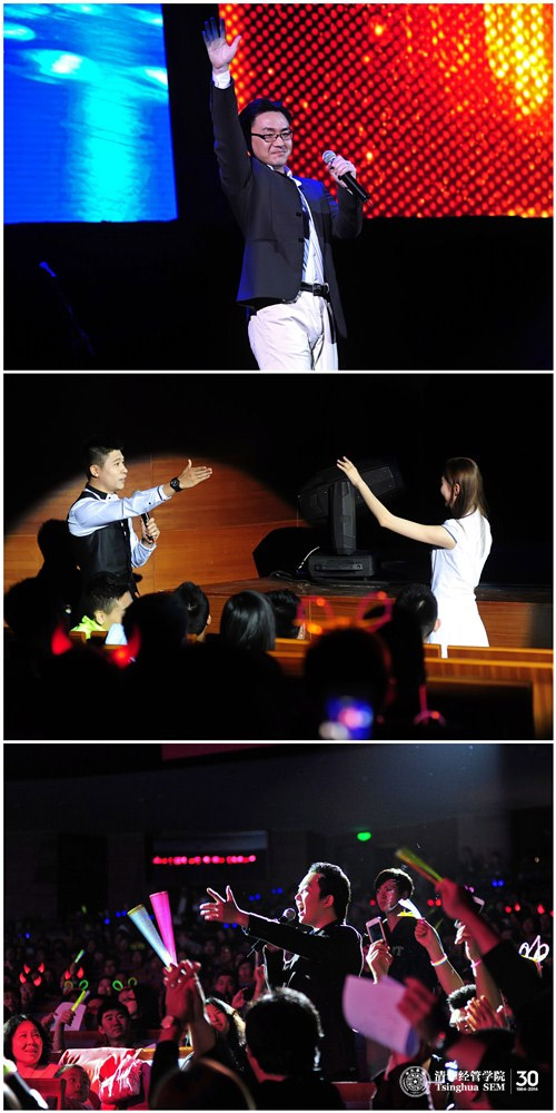 2014年4月25日晚,清华大学经济管理学院建院30周年“而立放歌”校园歌手演唱会在新清华学堂举办。本次晚会由清华经管学院主办,得到了校办企业启迪控股的鼎力支持。演唱会以流金岁月(1984-1994)、青春记忆(1994-2004)、花样年华(2004-2014)三个篇章按年代展开,一首首耳熟能详的校园金曲接连不断、精彩纷呈,动人的旋律点燃了全场观众的热情、大合唱溢满整个晚会现场。