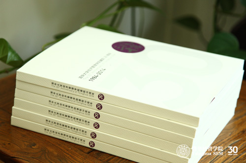 2014年4月25日,为庆祝清华大学经济管理学院建院30周年而编写的纪念画册《三十风采》正式面世。这本画册由三个部分组成,即“三十历程”、“卓越成就”和“岁月情怀”。画册的内容围绕这三个部分,以不同角度、侧面反映建院30周年过程中,学院历经的创业艰辛与发展历程,突出展现建院30年来学院所取得的令人瞩目的卓越成就,以及在这期间经管人所表现出的卓然风采与精神面貌。