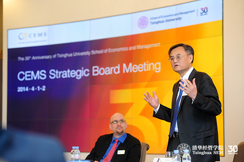 2014年4月1日,来自欧洲、亚洲的20余位顶级商学院院长齐聚清华大学经济管理学院,围绕管理硕士国际联盟(CEMS)的发展战略和一系列相关问题进行讨论。CEMS是一个汇集了全球顶尖商学院的联盟,战略委员会年会是CEMS最重要的年度活动之一,在促进成员学院之间的交流、互动和合作方面起到了重要作用。清华经管学院是CEMS在中国大陆的唯一成员,在学院建院30周年之际,承办了CEMS首次在亚洲召开的年会。