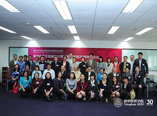 2014年3月29日下午,23位清华经管学院会计系首届本科、研究生校友来到经管学院舜德楼116,与亲历了清华大学会计学科建立和发展历程的领导、老师共40余人欢聚一堂,共同纪念这个特殊的日子。