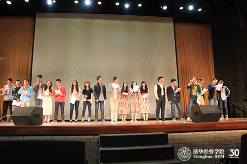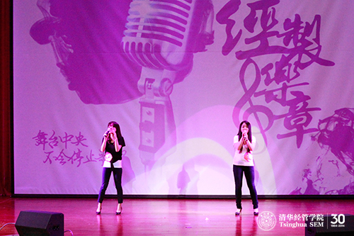 “经制乐章”是清华经管学院一年一度的本科生歌手大赛,由学院学生会主办,是全院同学展示歌喉的舞台。本届“经制乐章”以“舞台中央,不会停止歌唱”为口号,鼓励“全民娱乐”,吸引了同学们的广泛参与,共有62名个人和20个组合报名参赛。此次决赛还是近5年来清华经管学院学生会在大礼堂举办的首场文艺活动。(供稿:学生会通讯员:王子元、隋晨)