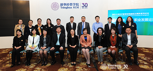 2014年3月29日,清华大学经济管理学院建院30周年系列活动“培育•成长”——职业发展论坛在舜德楼会议厅举行。本场论坛由清华经管学院职业发展中心主办,院长助理、会计系王琨教授主持。清华大学就业指导中心主任张其光教授出席并致辞,清华经管学院副院长郦金梁教授、院长助理钱小军教授出席此次论坛。嘉宾包括来自摩根士丹利、联想控股、中冶海外、君联资本、强生中国、麦肯锡、GE航空、中国银行的人力资源高层管理人员。近百名知名企业雇主、校友及在校学生参加了本次论坛。