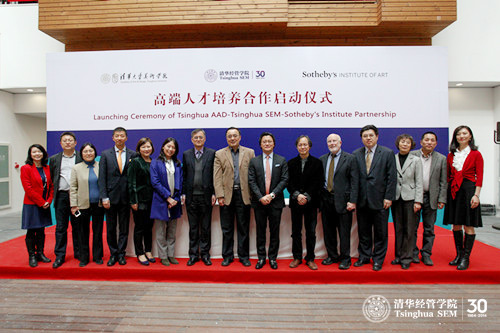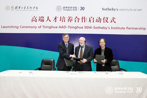 2014年3月12日,“清华大学经济管理学院-清华大学美术学院-苏富比艺术学院高端人才培养合作启动仪式”在清华美院举行。清华经管学院院长钱颖一教授、清华美院院长鲁晓波教授以及苏富比艺术学院院长大卫•利维(David Levy)先生共同宣布,将通过各自的资源优势在高端艺术管理教育领域开展全面深入的合作。