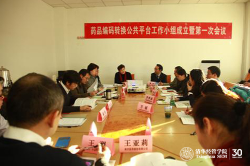 2013年12月26日,药品编码转换公共平台工作小组成立暨第一次会议在清华大学经济管理学院召开。药品供应链相关的医院、制造商、分销商、零售商等19家单位共28名代表参加本次会议。