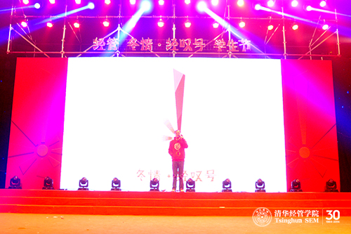 “冬情”学生节晚会是清华经管学院一年一度的文艺盛事,通常从每年9月开始筹备,历经多次排练、审核,于12月下旬在综合体育馆亮相。经过十多年的发展,“冬情”已成为全校范围内备受关注的学生节,也是经管学子们齐聚一堂欢声笑语的最佳舞台,而本届“经叹号”在节目质量、流程控制以及现场调度等诸多方面零失误的表现,让同学们赞不绝口。晚会结束时空前高的上座率再次印证了本届学生节的极大成功。“一夜惊叹生活”,这一届“冬情•经叹号”,再次成为同学们记忆中的经典。(供稿:学生工作组)