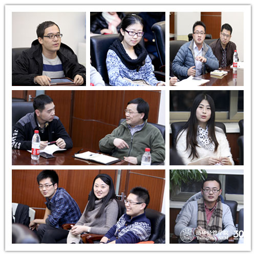 2013年11月25日,清华大学经济管理学院应用型硕士项目教学咨询委员会第三次会议在伟伦楼召开。清华经管学院副院长郦金梁教授、金融硕士项目学术主任刘淳教授,以及硕士项目办公室执行主任张亦萌等相关老师参加了本次会议。来自金融硕士、会计硕士、管理硕士(Master in Management,简称MiM)的18位学生就硕士项目的培养情况向学院提出建议与期望,以帮助学院进一步完善与提升各硕士项目的培养与教学质量。