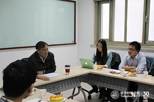 虽然北方的冬天有丝丝的寒意,但是伴着淡淡的茶香,舜德楼223讨论室传来阵阵愉快的谈笑声。2013年12月5日下午,清华经管学院“院长下午茶”硕士生专场活动举行,钱颖一院长与16位来自各个专业的硕士生进行了面对面的交流。针对学术硕士和专业硕士的不同特点,钱颖一院长分别与每个方向的同学交流了学习、生活、就业中遇到的问题。