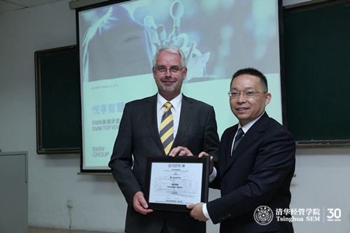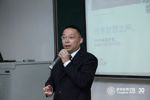 清华大学经济管理学院MBA课程“洞悉支柱产业系列课程(一):由宝马公司看世界汽车产业”(或称“BMW高端讲堂”)是由清华大学经济管理学院和宝马中国(BMW China)合作开发,旨在通过对宝马公司发展的深度解析,探索汽车及相关产业的发展历程、现状和未来趋势。今年已是双方合作的第四个年头。本学期课程由八次独立讲堂及两次学习旅行组成。每讲均由清华经管学院焦捷教授和宝马公司共同设计和组织教学,并邀请宝马集团在中国的分公司和合资公司高层领导担任演讲嘉宾,课程目前已确定九位BMW高级管理人员。嘉宾就“战略和领导力”、“汽车产业发展新纪元”、“联盟、合作和合资”、“销售和市场战略”、“中国汽车零售”、“宝马集团研发战略”以及“采购和供应网络”等多个主题开展演讲。