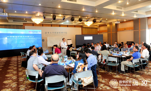 2013年9月6日至7日,“中国管理学者交流营”(2013)在清华经管学院举办。50余位来自全国各地的管理学者相聚清华经管学院,与前国际管理学会主席、美国弗吉尼亚大学达顿商学院讲席教授陈明哲共同探讨未来中国的管理研究及教育。清华经管学院领导力与组织管理系、创新创业与战略系的十余位教师参加了研讨。
