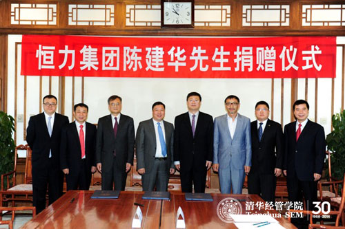 2013年7月24日,恒力集团董事长陈建华先生捐资建设清华大学经济管理学院新教学楼的捐赠仪式在清华大学工字厅举行。清华大学校长陈吉宁、恒力集团董事长陈建华、清华大学教育基金会秘书长李家强共同签署了捐赠协议。
