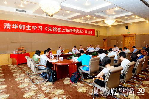 2013年8月23日,清华师生学习《朱镕基上海讲话实录》座谈会在清华大学经济管理学院举行,本次座谈会也是清华经管学院30年院庆系列活动之一。清华大学副校长谢维和教授、清华经管学院院长钱颖一教授、党委书记杨斌教授以及学院师生和校友代表参加了座谈会并相继发言,交流读书感想和体会,气氛隆重热烈。座谈会由学院党委副书记焦捷教授主持。