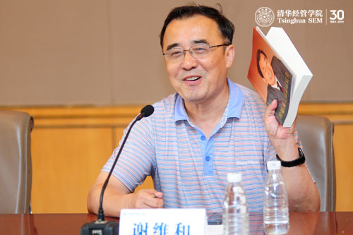 在座谈会的最后,清华大学副校长谢维和教授做了总结发言。他说,经管学院在新书出版之际,召集院里领导、骨干教师和学生代表第一时间开展这样的座谈会,又把心得体会谈得如此深入,他很受益。他希望经管学院继续保持积极学习的优良传统,希望大家不仅要学习好,还要宣传好,实践好这本书,多去思考老院长出这本书的初衷,深刻体会书中的经验和智慧对我们今天的价值。