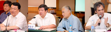 左起为:清华大学常务副校长程建平教授、教育部高教司刘贵芹副司长、管科工教指委主任清华经管学院陈国青教授、管科工教指委秘书长清华经管学院陈剑教授