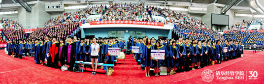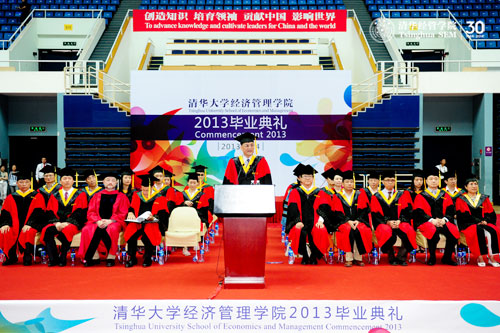 清华大学经济管理学院2013毕业典礼7月14日下午在清华大学综合体育馆进行。清华经管学院2013届毕业生及其亲友两千余人,与学院教师们一起参加了毕业典礼,这也是历年来参加人数最多的一次经管学院毕业典礼。钱颖一院长主持了典礼。清华经管学院顾问委员会委员、耶鲁大学理查德•莱文(Richard C. Levin)校长发表了演讲。