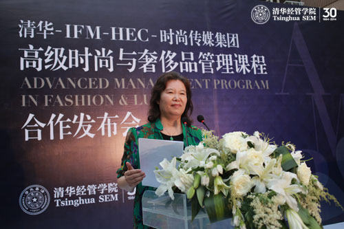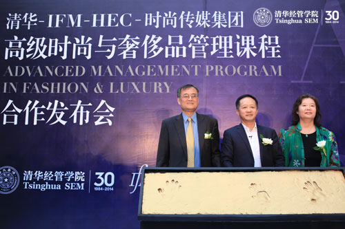 清华经管学院院长钱颖一在致辞中说,随着中国经济持续快速的发展,大量国际时尚品牌进驻中国,而中国本土品牌也逐渐培育出独特的时尚属性。中国正在从制造大国向品牌大国转变。为了促进国际产业经验交流,助力中国时尚和奢侈品产业领军人物和高级管理人才的培养,早在2006年,清华大学经济管理学院就和法国时尚学院(IFM)、巴黎HEC商学院(HEC Paris)共同开发了“高级时尚与奢侈品管理课程”。两百五十多名学员参加了这项课程的学习,并表示受益匪浅。今年由于中国时尚行业的领军品牌时尚传媒集团的加入,使得这一课程更增加了品牌高度和时尚影响力。四方合作的达成意味着时尚教育领域将呈现出更加高端、国际化的趋势,同时对中国时尚产业优质人才的培养、促进国际时尚产业交流产生深远影响。