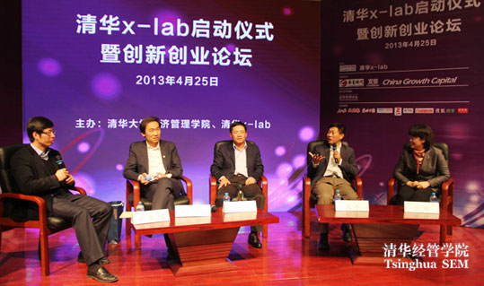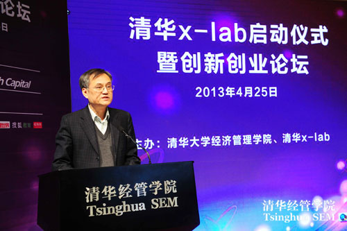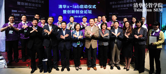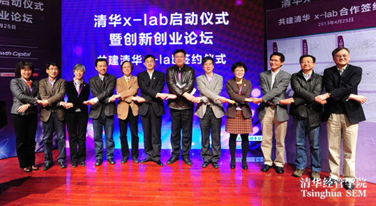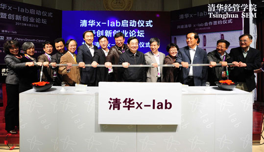 2013年4月25日,清华x-lab启动仪式暨2013创新创业论坛在清华大学经济管理学院伟伦楼报告厅举行。清华大学党委书记胡和平、经济管理学院院长钱颖一、机械工程学院院长尤政、理学院院长薛其坤、信息科学技术学院常务副院长张佐、美术学院院长鲁晓波、医学院党委书记洪波、航天航空学院党委书记李俊锋、环境学院副院长左剑恶、建筑学院副院长刘健、材料学院副院长林元华、公共管理学院党委副书记谢矜、工程物理系主任助理刘井泉共同启动了清华x-lab---一个面向大学、超越学科界限、发现和培育创意创新创业人才的新型教育平台。