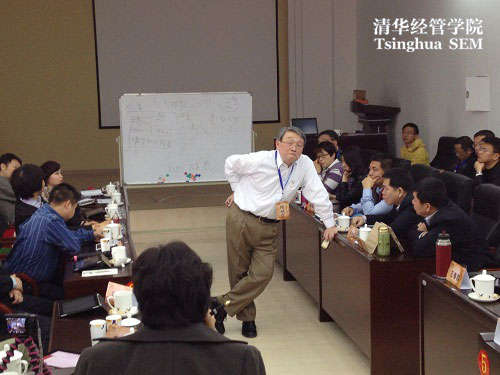 一上课,同学们便眼前一亮,陈明哲和他的助教们一同重新摆设了教室中的桌椅陈设,并亲自重新布置了每一位同学的座位安排。陈明哲在第一堂课上就能叫出每一位同学的名字,甚至令同学们更为惊叹地是,他清楚了解每一位同学的成长经历以及企业的发展情况。走下讲台,全程走动式上课,全心投入在整个课堂中教学、交流、引导以及互动中,这种对教学一丝不苟的精神深深打动了每一位同学。陈明哲曾在台湾与美国两地接受教育,并在美国生活了三十余年,他始终致力于将中西方文化有机地整合在一起,是文化双融的一位“践行者”,他希望能够将中西方各自好的东西提取出来并整合到一起为有心人所用,而这样独具匠心的授课方式也正是陈明哲整合中西方教学模式的践行之一。他笑谈:“我不是来教授同学们什么东西的,而是以一个“伴读”角色与大家同修的。”这种不断提问、不断与同学们互动的启发式教学模式将同学们的学习热情充分地调动了起来,课堂的氛围提升到了一个全新的高度。