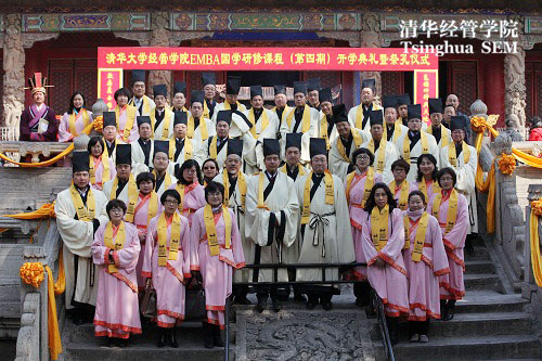 2013年3月13日,清华大学经济管理学院EMBA国学研修课程(第四期)的同学们从全国各地汇聚到孔子故里曲阜,举行开班仪式和“儒”模块的研习。来自清华EMBA02级至11级各年级的50位校友在为期四天的时间里,与国学领域造诣颇深的大师们一同探求博大精深的中华文化,追溯中华文化之本源和儒学精神之要义。