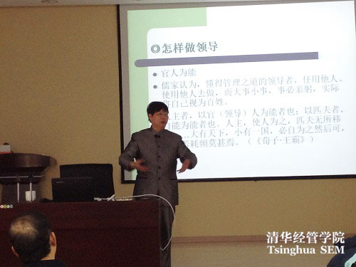 颜炳罡教授以《儒学和孔子》为题给同学们上了国学的第一课。颜教授是国内外知名的儒学研究者,同时是颜氏后人,承袭大儒的情怀和风范,颜老师在课堂中融贯古今,旁征博引,从一个简单的问题“儒学是什么”出发,向同学们系统性地详述了儒学的由来以及儒学“道、学、政、行”体系所蕴藏着的丰富内涵,更进一步的将这一体系应用到同学们所面临的企业管理问题之中来剖析儒学的教义,这让同学在第一天的学习中不仅对儒学的基本要义有了一定的了解,更将这些要义与自己平日在工作中所面临的管理问题所有机地结合在了一起。颜教授慷慨激昂、深入浅出地讲解把同学们一下子带到了千年前的古人教化中,“礼”“仁”“恕”等儒家核心理念在颜教授的一一分析讲解下,大家开始走进儒学的世界。