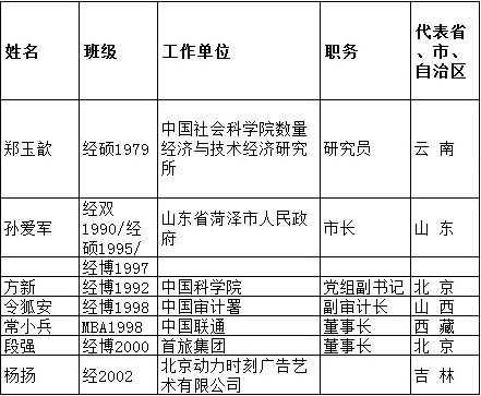 当选第十二届全国人民代表大会代表的清华经管学院本科、硕士、博士、MBA校友(共7人)