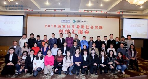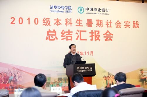 2012年11月22日下午,清华大学经济管理学院2010级本科生暑期社会实践总结汇报会在经管学院多功能厅举行。本次暑期社会实践活动围绕中国农村金融与信息化等主题展开,得到中国农业银行股份有限公司的大力支持。