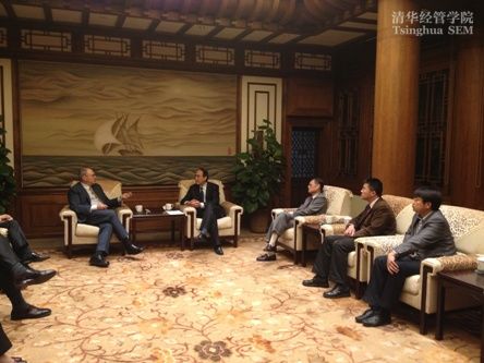 2012年10月16日下午,清华经管学院与微软公司联合主办的“领时代、赢未来” 全球MBA管理培训项目招聘活动在伟伦报告厅拉开帷幕。活动之后清华大学副校长袁驷和清华经管学院院长钱颖一在工字厅会见了微软公司首席研究及战略官克瑞格•蒙迪(Craig Mundie),共同回顾了微软公司与清华大学近年来各方面的合作成果。