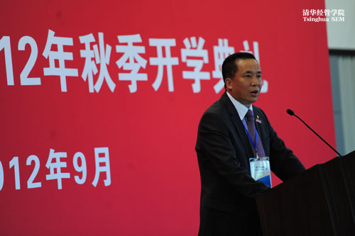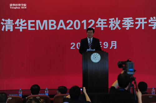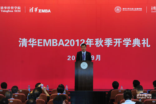 9月19日下午,清华EMBA2012年秋季开学典礼在清华大学主楼后厅举行。典礼首次由清华经管学院与清华五道口金融学院共同举办,来自2012级清华经管学院EMBA、第八期清华—花旗EMBA媒体班、以及首届五道口金融EMBA的400多位同学参加了开学典礼。清华大学经济管理学院院长钱颖一、院长助理狄瑞鹏,清华大学五道口金融学院常务副院长廖理、党委副书记赵岑等参加了典礼。